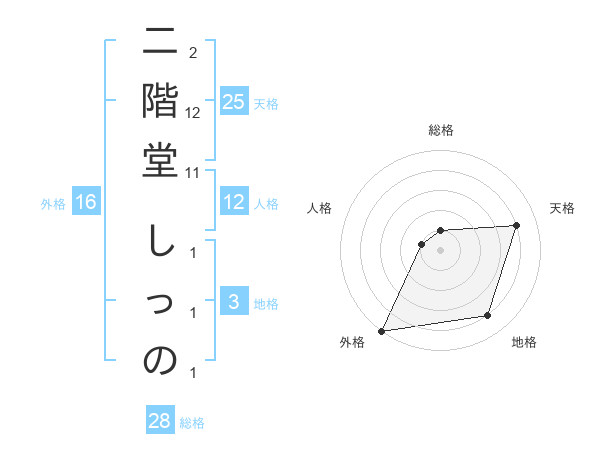 二階堂 しっのさんを姓名の画数から五運を鑑定