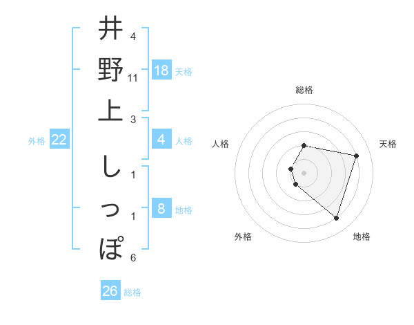 井野上 しっぽさんを姓名の画数から五運を鑑定