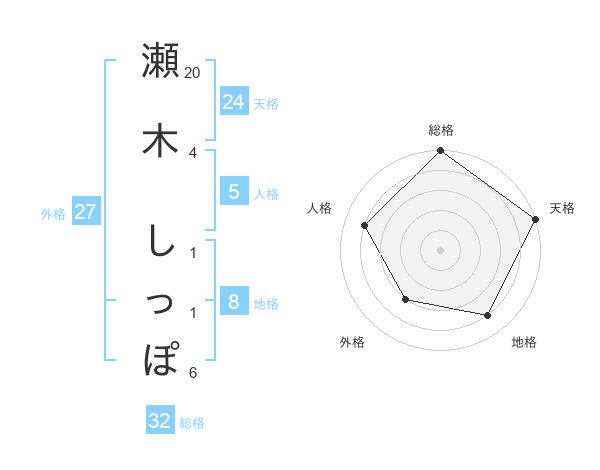 瀬木 しっぽさんの総格は32画の5点!