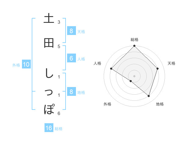 土田 しっぽさんを姓名の画数から五運を鑑定