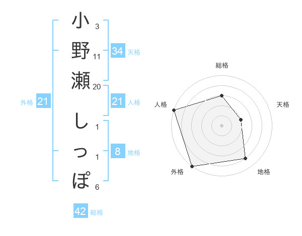小野瀬 しっぽさんの外格は21画の5点