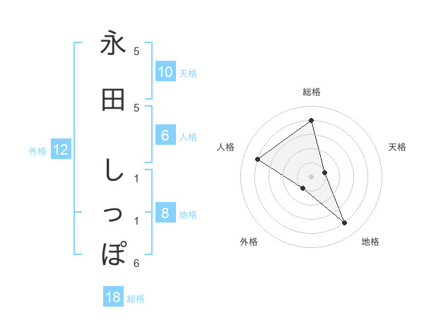 永田 しっぽさんの天格は10画の1点!