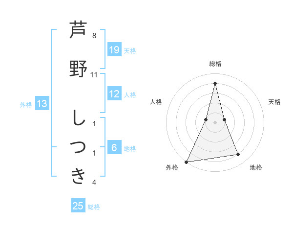 芦野 しつきさんの総格は25画の4点!