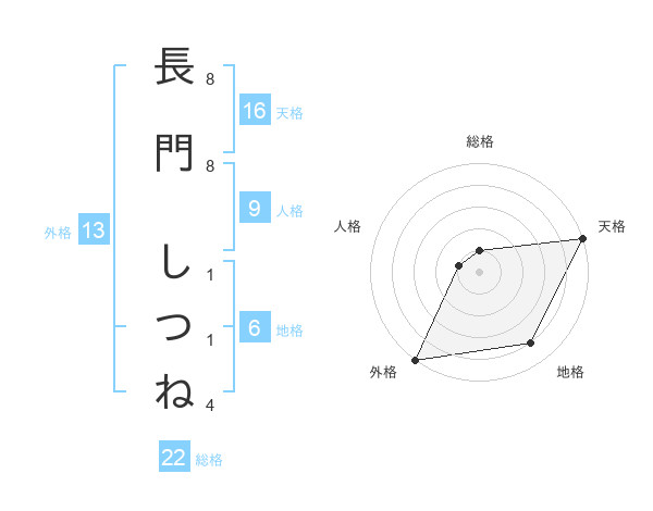 長門 しつねさんの外格は13画の5点!