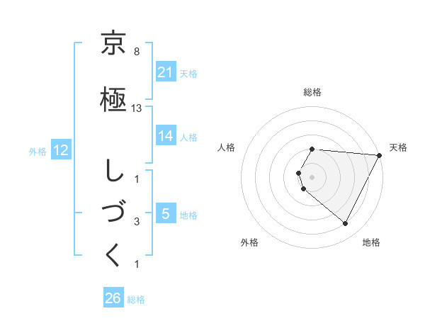 京極 しづくさんの天格は21画の5点!
