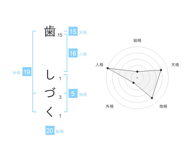 歯 しづくさんの総格は20画の1点!