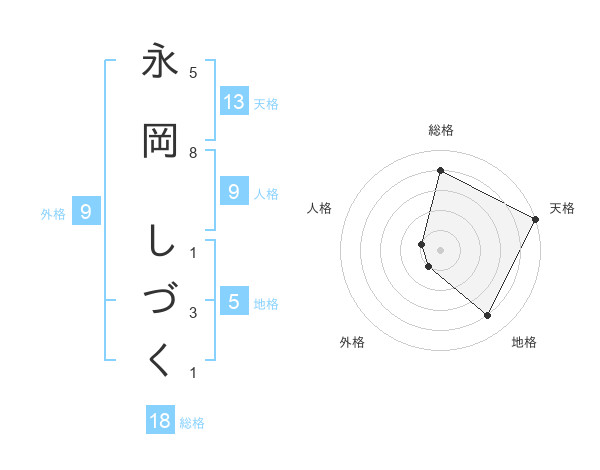 永岡 しづくさんの天格は13画の5点!