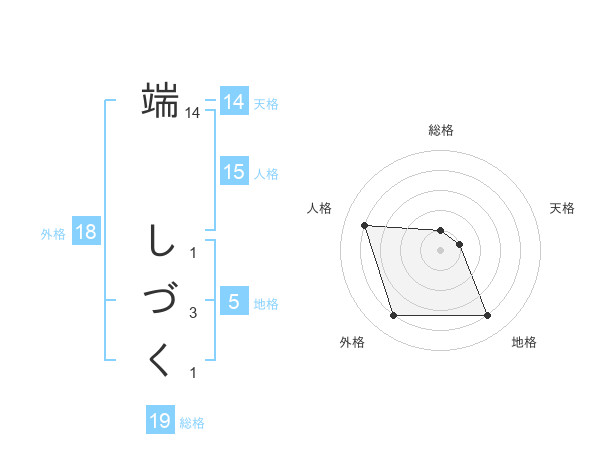 端 しづくさんの総格は19画の1点!