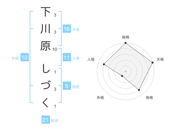 下川原 しづくさんを姓名の画数から五運を鑑定
