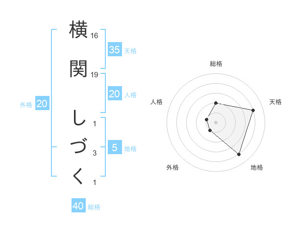 横関 しづくさんの天格は35画の4点!