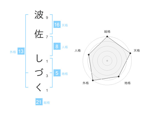 波佐 しづくさんの総格は21画の5点!
