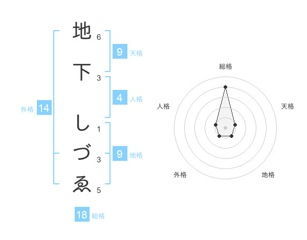 地下 しづゑさんを姓名の画数から五運を鑑定