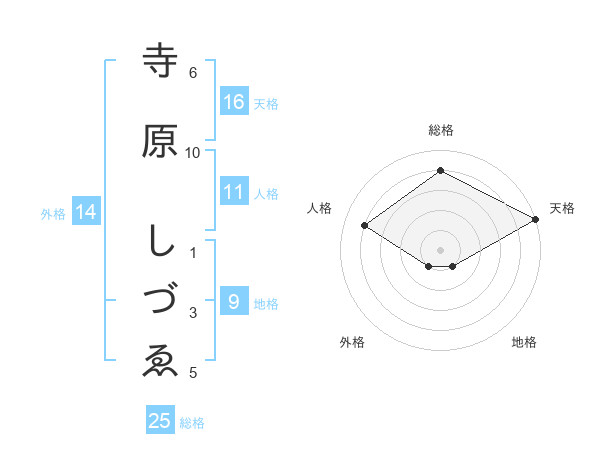 寺原 しづゑさんの総格は25画の4点!