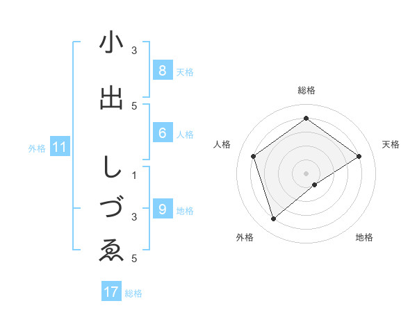 小出 しづゑさんを姓名の画数から五運を鑑定