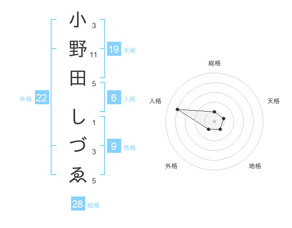 小野田 しづゑさんを姓名の画数から五運を鑑定