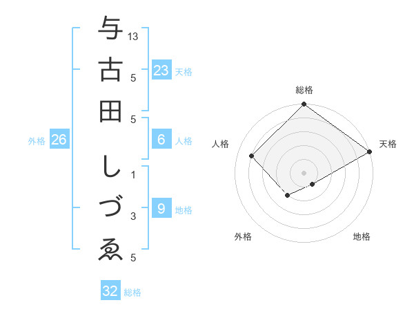 与古田 しづゑさんを姓名の画数から五運を鑑定
