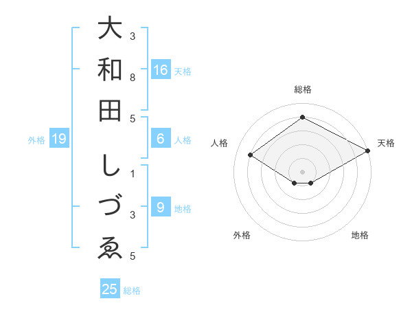 大和田 しづゑさんを姓名の画数から五運を鑑定