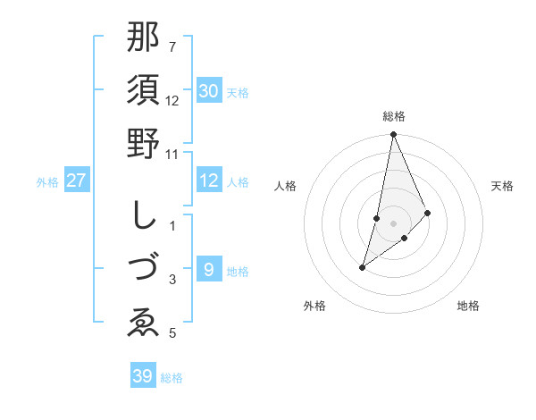 那須野 しづゑさんを姓名の画数から五運を鑑定