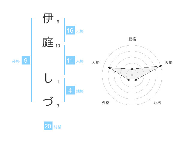 伊庭 しづさんの天格は16画の5点!