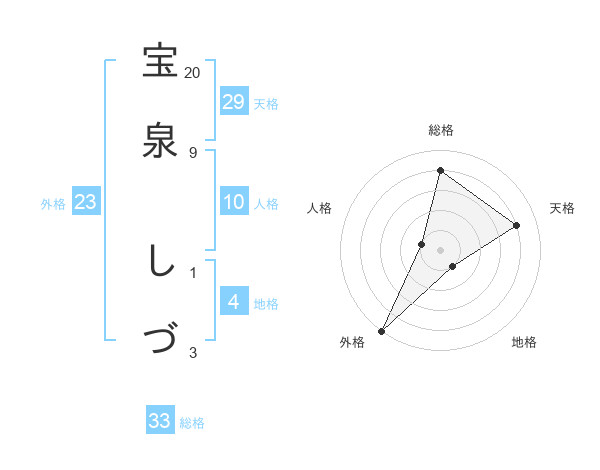 宝泉 しづさんを姓名の画数から五運を鑑定