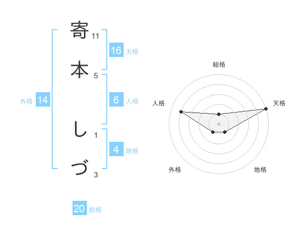 寄本 しづさんの総格は20画の1点!