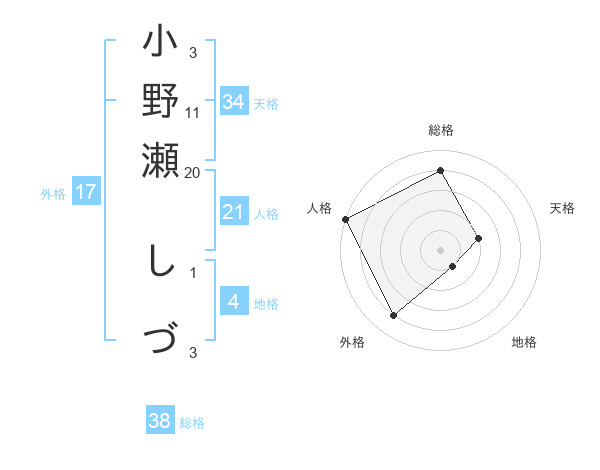 小野瀬 しづさんを姓名の画数から五運を鑑定