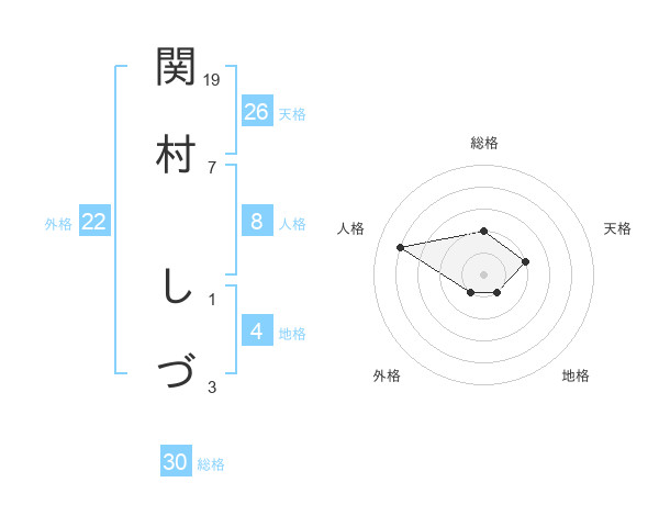 関村 しづさんの総格は30画の2点!