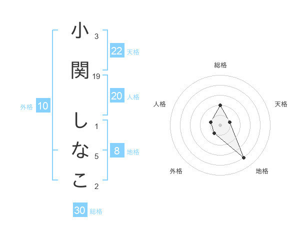 小関 しなこさんの総格は30画の2点!