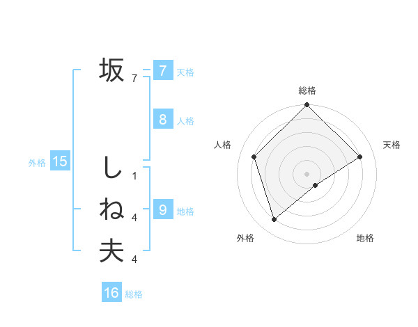 坂 しね夫さんの天格は7画の4点!