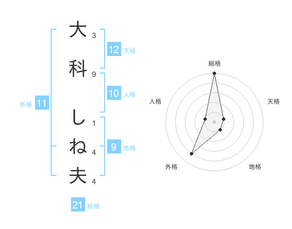 大科 しね夫さんの天格は12画の1点!