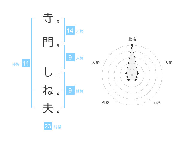寺門 しね夫さんを姓名の画数から五運を鑑定