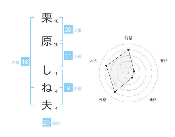 栗原 しね夫さんを姓名の画数から五運を鑑定
