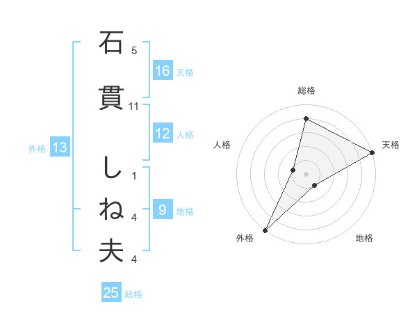 石貫 しね夫さんの外格は13画の5点!