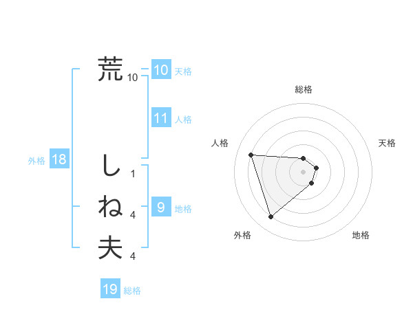 荒 しね夫さんの外格は18画の4点!