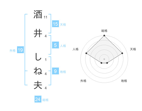 酒井 しね夫さんを姓名の画数から五運を鑑定