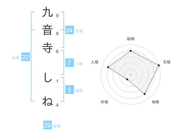 九音寺 しねさんの総格は29画の4点!