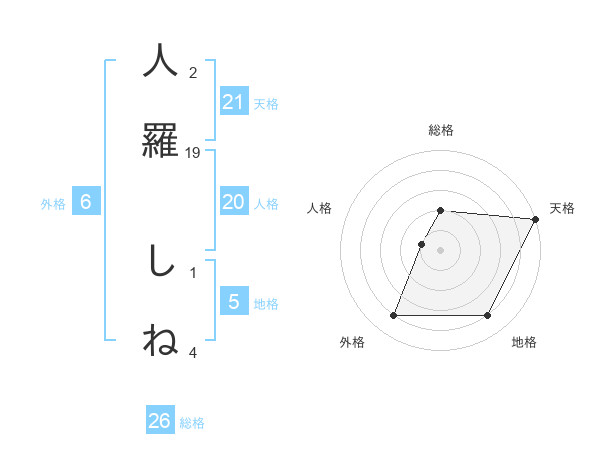 人羅 しねさんの総格は26画の2点!