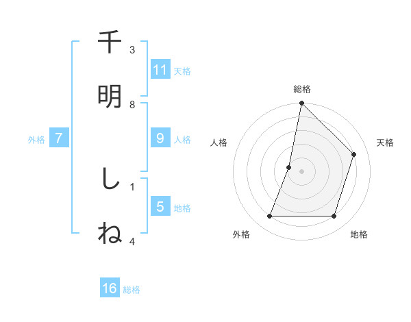 千明 しねさんの外格は7画の4点!