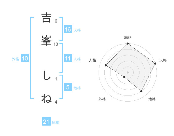 吉峯 しねさんの総格は21画の5点!