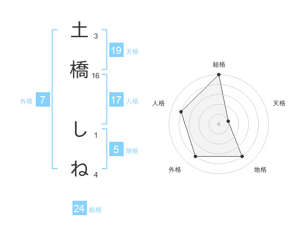 土橋 しねさんの地格は5画の4点!
