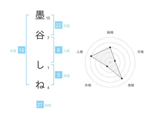 墨谷 しねさんを姓名の画数から五運を鑑定