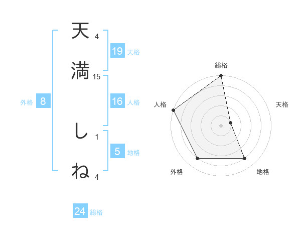 天満 しねさんの総格は24画の5点!