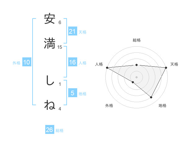 安満 しねさんの天格は21画の5点!