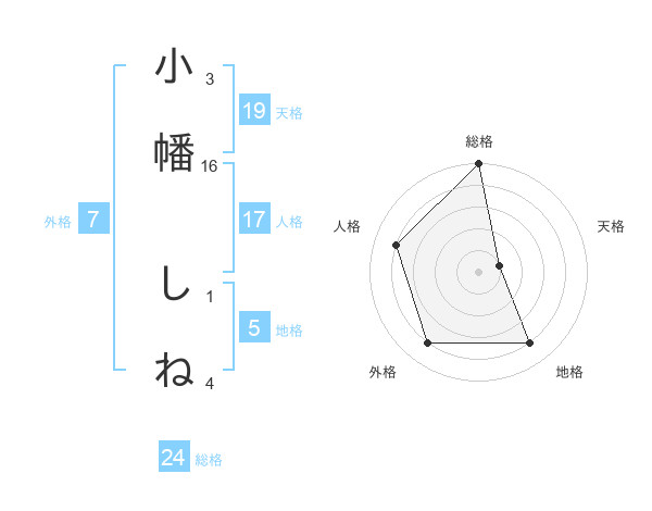 小幡 しねさんの外格は7画の4点!