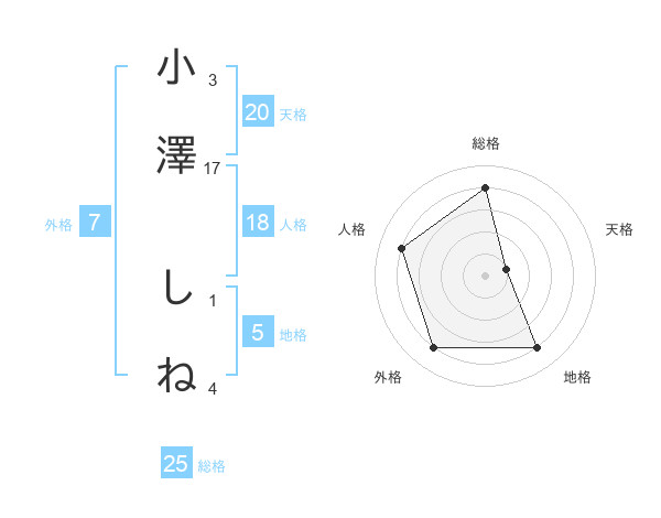 小澤 しねさんの天格は20画の1点!