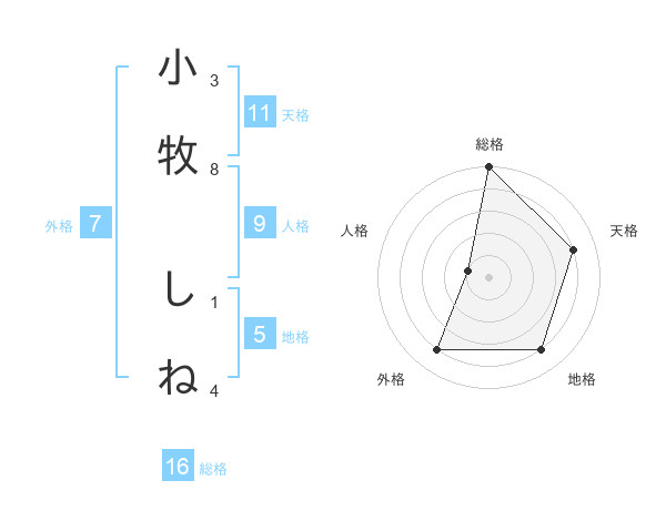 小牧 しねさんの総格は16画の5点!