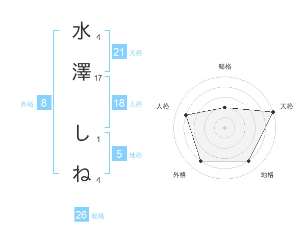 水澤 しねさんの地格は5画の4点!