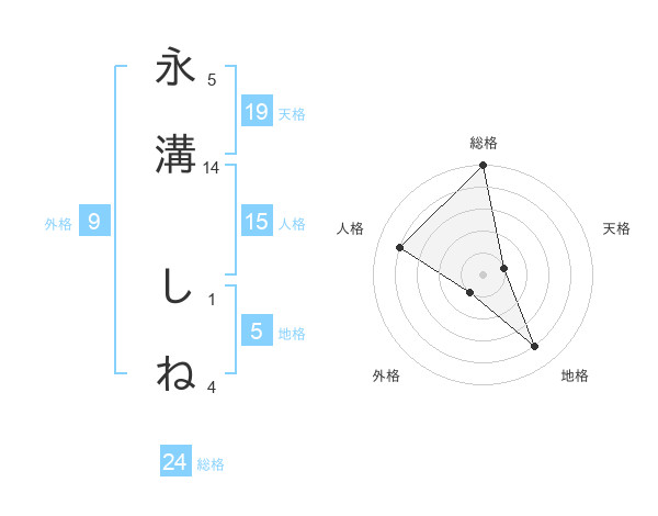 永溝 しねさんの人格は15画の4点!