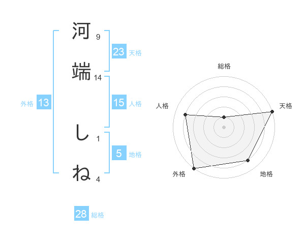 河端 しねさんの外格は13画の5点!