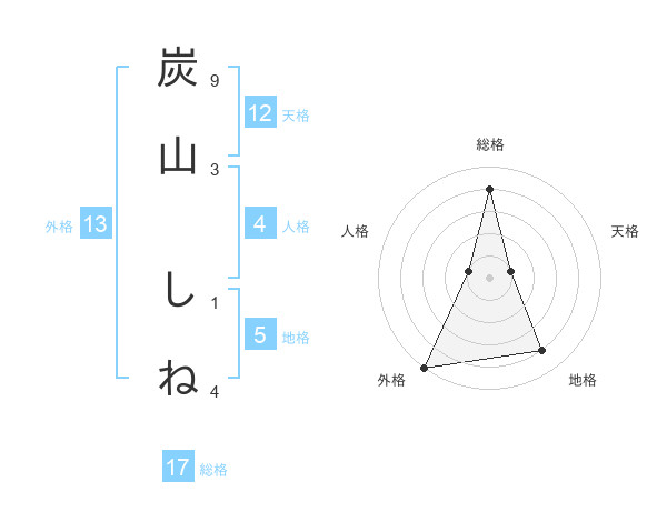 炭山 しねさんの総格は17画の4点!